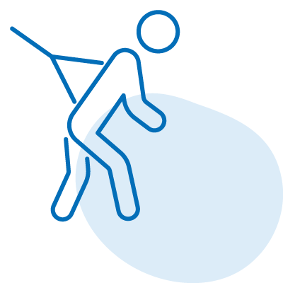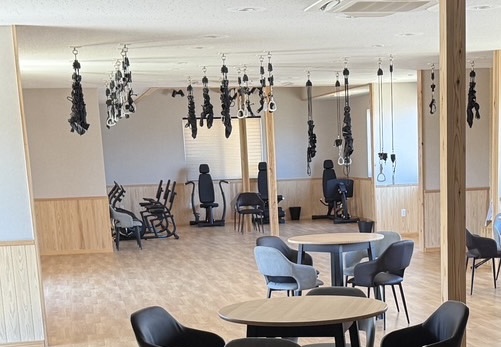 天井から吊るされたベルトを体に装着することで、普段は危なくてできない動きや運動も一人でできるようになります♪